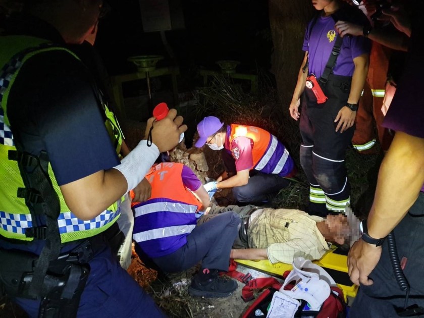 定位最後發話基地台發現,老翁斷訊的位置位在捷運A17站後方,緊鄰著新街溪,周邊遍布農田及草叢,範圍十分遼闊,員警不放棄沿線摸黑搜索,終於在25日凌晨2時許,順利在大園區五結路偏僻的農地溝渠內發現老翁,老翁全身無力,陷在泥濘中動彈不得,所幸生命跡象穩定僅受輕傷,結束一場驚魂,家屬得知老翁獲救後,非常感謝員警視民如親,竭盡所能地協助搜救,讓家屬感動萬分。