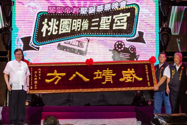 桃園市長鄭文燦28日晚間前往龜山區桃園明倫三聖宮,出席「關聖帝君1860週年聖誕千秋-祝壽三獻大典」,鄭市長表示,位於虎頭山上的明倫三聖宮主祀關聖帝君,在桃園關公廟相當具有代表性,信徒眾多,香火鼎盛,每逢周末人潮不絕,因此明倫三聖宮不僅讓信眾如其所願的完成願望,也服務許多在地鄉親與山客。今日是關聖帝君的聖誕活動,鄭市長也祈求關聖帝君保佑地方平安順利。