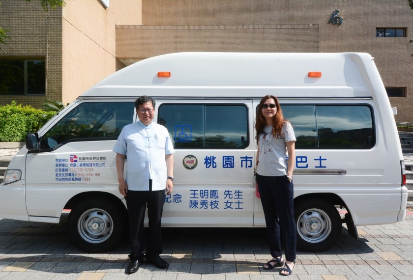 桃園市長鄭文燦31日下午在社會局長王安邦陪同下於市府,出席「王蓮蓉女士捐贈復康巴士儀式」,鄭市長表示,桃園的復康巴士在民間企業或個人的大力捐贈下,現已達173輛,目前市內身心障礙者已超過8萬人,屬於中重度以上的身心障礙朋友約2萬7,000人,其中有登記搭乘復康巴士人數約9,300人,107年度出勤次數更高達27萬次,顯見市民有殷切使用復康巴士的需求。感謝王蓮蓉女士的愛心,市府將持續募捐復康巴士,服務更多有需求的市民。