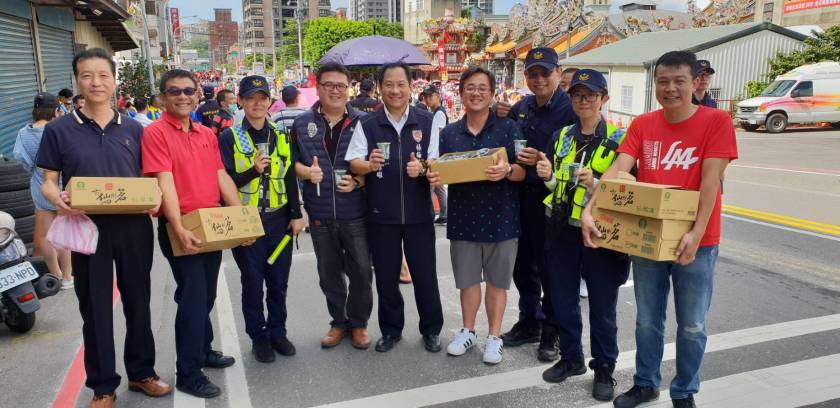 3日正午烈日當頭,即使揮汗如雨下,認真執勤的楊梅基層員警,為讓總統參選人參拜宮廟行程圓滿順遂,盡忠職守落實交通管制及疏導。近來夏季氣溫居高不下,體感溫度飆破40度,對基層員警而言,在如此高溫下執勤簡直就是「酷刑」,楊梅警分局警友辦事處主任許志寧有感員警辛勞,便分送60箱楊梅區農會自行研發的仙草凍及仙草茶慰勞各派出所、交通分隊等外勤員警。