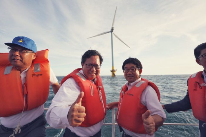 桃園市長鄭文燦率領市府團隊赴日本進行友好城市交流訪問,於6日下午前往千葉縣銚子市考察離岸風電發展,東京電力公司於2009年起,於銚子市近海設置固定式離岸風電的實證研究設施,至今獲得相當成果,東電公司亦看好再生能源成為未來發電的主力,對此,鄭市長表示,東電公司在離岸風電實證測試方面,擁有豐富經驗,並針對問題一一進行調查了解,台灣也具備優質風場條件,希望未來台灣與日本多方交流,共同促進亞洲風電產業蓬勃發展。