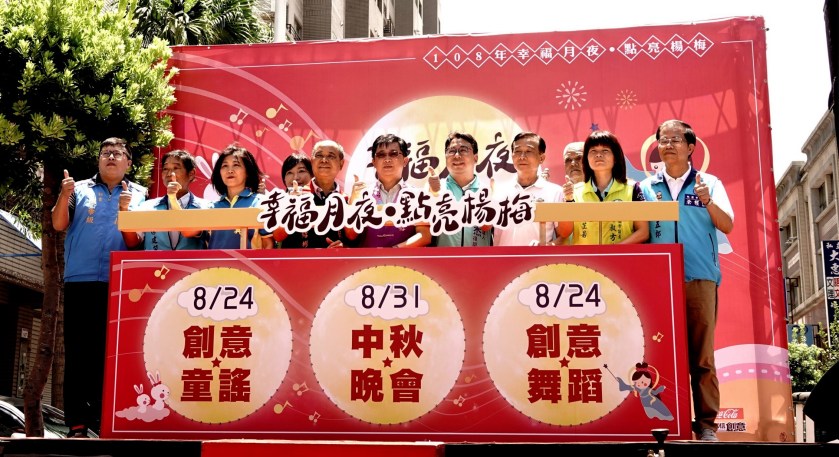 楊梅區公所連續五年主辦的「幸福月夜‧點亮楊梅系列活動」,13日於四維商圈舉辦記者會揭開活動序幕,楊梅區羅國裕區長率領團隊偕同多位民意代表秘書、里長、藝文競賽隊伍一同出席。羅國裕區長表示,今年提早在8月24日規劃兩場藝文競賽,「創意童謠賽」及「創意舞蹈賽」共吸引近40隊參賽,總獎金近八萬元,提供楊梅鄉親一個展演的平台,互相觀摩精進藝文。