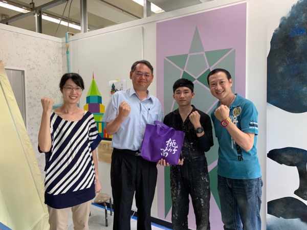 圖說:桃竹苗分署長賴家仁(左2)、與指導老師林沁(左1)、柯明村(右1)一起為即將赴俄羅斯喀山參加45屆國際技能競賽的油漆裝潢(漆作)職類國手劉峙亨(右2)打氣加油。