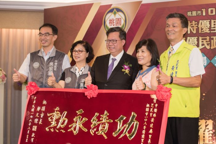 鄭市長也說,楊梅區瑞塘里王興福里長用心推動社區照顧、客家文化,並積極協調闢建公園等建設;蘆竹區山鼻里張寶龍里長積極辦理老人照顧福利,並協助推動德馨堂再造;龍潭區三水里林延能里長也積極打造鄉村型社區,保留當地的客家文化、茶鄉文化;大溪區光明里黃永龍里長則積極解決地方問題、爭取各項建設以滿足地方需求。包括市府民政局長湯蕙禎、桃園區長陳玉明、中壢區長吳宏國、平鎮區副區長鄭錦文、八德區長蔡志揚、楊梅區長羅國裕、大溪區長陳嘉聰、蘆竹區長邱瑞朝、大園區長徐藍科、龜山區長呂緣、龍潭區長胡星輝、新屋區長姜義坤、觀音區長洪清淵均一同出席活動。