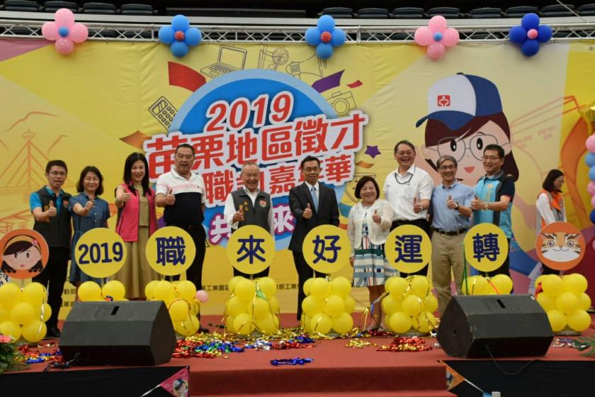 由勞動部辦理的「2019苗栗地區徵才暨職訓嘉年華」17日在苗栗巨蛋體育館登場,現場33家企業提供多達1,831個工作職缺,為苗栗地區近十年來規模最大的就業博覽會,邀請到包含智邦電子、裕隆汽車、信邦電子及太平洋醫材等知名廠商,其中還有將近400個樂齡友善職缺,提供求職朋友更多元選擇。此外現場起薪3萬元以上職缺多達540個,矽品精密工業的職缺薪資更上看8萬元,活動現場一早就湧入大量民眾。經統計至中午前,已有1,800人次參與此次徵才活動、初步媒合率達6成以上。