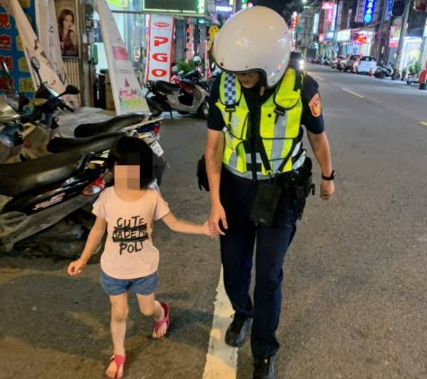 桃園市大園區一名4歲的郭姓女童,於16日晚間跟媽媽逛夜市時,不慎走失在街頭徘徊,員警發現後牽著女童沿途詢問店家卻一無所獲,所幸女童母親發現小孩不見後趕至派出所詢問,順利找回寶貝女兒。