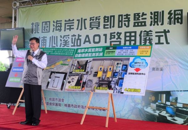 桃園市長鄭文燦19日上午前往大園區,出席「桃園海岸水質監測埔心溪站啟用儀式」時表示,海管處積極推動海洋污染管制,規劃於11條河川出海口陸續建置海岸水質監測站,今日啟用的埔心溪站可監測11種水質項目,約每20分鐘可測得1筆數據,並即時回傳至海岸環境監測科技中心,大幅提高監測即時性,遏止不肖偷排業者的僥倖心理。市府將持續完成各監測站,讓海洋污染管制更加完善。