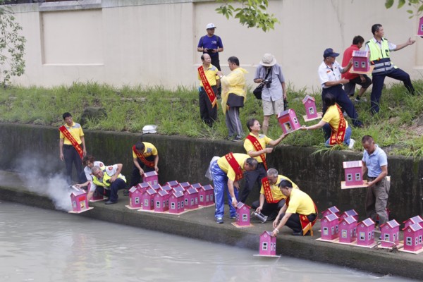 水燈祈福遶境活動於下午1點在中壢仁海宮前集結登場,輪值里水燈排車隊與仁海宮的人力水燈排遶境兵分二路,大水燈排拉抬由中壢區巡守隊、義消等地方人士集結而成,小水燈排拉抬則是由新街國小學童組成,可愛畫面超吸睛,同時也代表著文化的向下扎根及傳承。