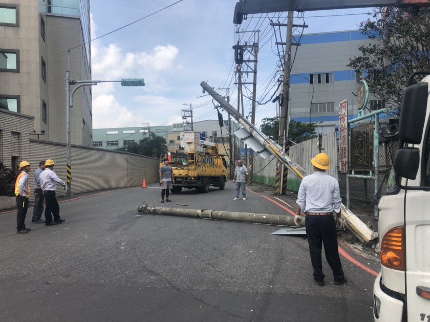 楊梅分局幼獅派出所受理後,火速派員前往處理,警員陳冠州,陳冠戎先行管制交通,讓其單向通車,並通知中壢養工處平鎮段現場將電桿排除,員警亦於現在管制及疏導交通,於1小時候恢復交通順暢,並將林姓駕駛帶案調查。
