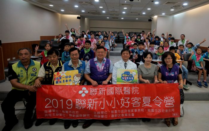 為使學童以寓教於樂的方式了解醫學知識,引發小朋友學習客語興趣,桃園市政府客家事務局和聯新國際醫院於22日共同舉辦「小小好客夏令營」。不同於一般的小小醫師體驗營,此次營隊特別結合客家語言文化,規劃了人體器官與疾病、客家美食手做與營養揭密及客語闖關遊戲等活動,讓小朋友更有學習意願與新鮮感。7月份開放報名即迅速額滿,50位國小三至六年級的學童,戴著客家花布領巾,進行客語宣誓,為夏令營活動揭開序幕。