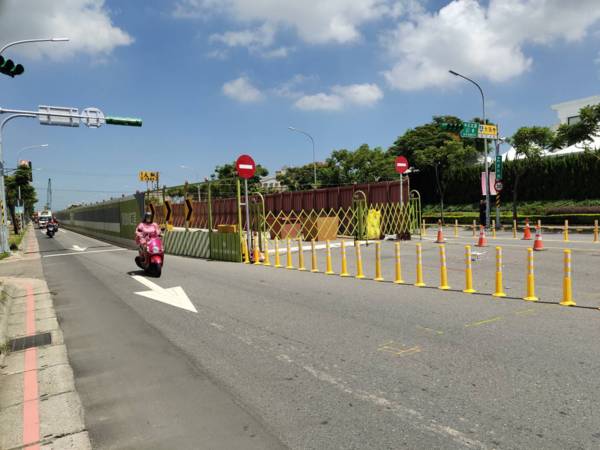 為防止最外側車道車輛於路口違規左轉或是因兩車道間圍籬遮蔽駕駛視線,而於變換車道時發生碰撞事故,蘆竹分局建議自施工圍籬終止處開始設置回復式導桿(即俗稱防撞導桿),一直延伸至320巷路口中央約15公尺,以實體阻礙最外側車道路口違規左轉,並指定最內側車道車輛變換車道區域。除可防範兩車道車輛發生意外,同時也可分流車輛,收順暢交通之效。
