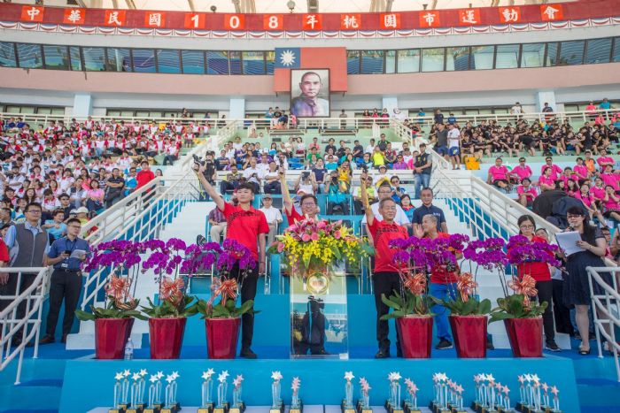 桃園市長鄭文燦23日上午前往桃園市立田徑場,出席「108年桃園市運動會開幕典禮」時表示,今(108)年市運會參賽人數約5,500人,競賽項目包含田徑及游泳,開幕典禮由市府各局處及各公所組隊參加創意表演及趣味競賽,現場熱鬧非凡。鄭市長期勉大家都能奪得佳績,也為即將到來的全國運動會爭取最好的表現。