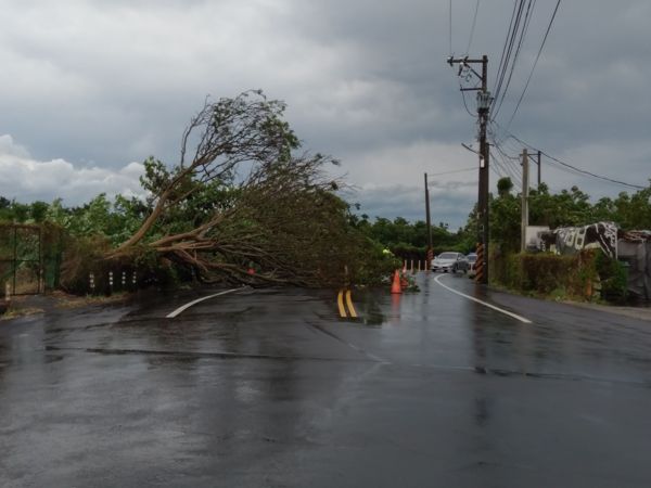 白鹿颱風威力強猛 八德區路樹連根拔起 2019-08-24 yehyeh177363 未分類 發表留言 白鹿颱風來襲北部風雨漸增,桃園市八德區茄苳路有路樹因風勢過大,導致連根拔起倒塌橫跨路面,八德分局高明派出所警員呂理銘、陳勇成接獲通報趕到到場,發現路樹體積龐大,倒塌路段處於馬路彎道上,為了避免危險,警方將道路單向封閉實施交通管制,立即通知八德區公所派員協助排除障礙,約於兩個小時後(16時)恢復通行。 分享此文: 分享到 X(在新視窗中開啟) X 分享到 Facebook(在新視窗中開啟) Facebook 喜歡 正在載入... 相關