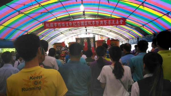 上午9點秋祭大典在優美的國樂中開始,桃園市政府民政局長官擔任主祭官率羅區長及公所一級主管團隊和參加與祭的家屬們,在司儀的引導之下依序上香、獻花、獻果、獻酒,行三鞠躬禮及朗讀祝禱文,下午則由法師主壇進行普渡大會,恭誦經文普渡先靈,表達對先人最虔誠的敬意。