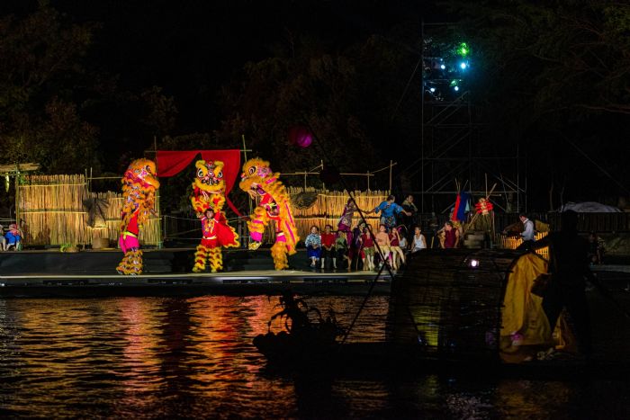 桃園市長鄭文燦24日晚間前往龍潭大池,出席桃園市逗舞兒舞蹈團「水映幻舞創意劇場『美麗的神話-紅菱夢』水景舞台劇」,鄭市長表示,龍潭大池過去又稱「菱潭埤」,為桃園開發歷史的重要起點之一,除了舉辦燈會、龍舟賽等經典活動,也非常適合發展水上劇場及水上休閒活動,今晚特別由在地人文社團、里民、素人演員、劇組演出水景舞台劇,為市民朋友帶來美妙的藝文饗宴,未來則希望進一步發展成為定目劇,展現龍潭在地文化。