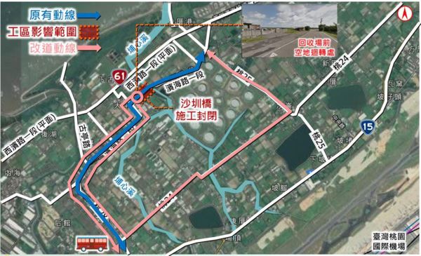 3.桃園客運5084改道路線:於沙圳橋南端資源回收場前空地迴轉處,改由行駛桃24、桃25路線。