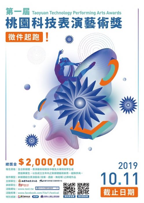 為桃園市科技藝術長遠發展,並結合在地科技資源,積極引入多面向的新媒體展演內容,桃園市政府藝文設施管理中心推出第一屆「桃園科技表演藝術獎」,總獎金新臺幣200萬元,9月27日起至10月11日止開放報名。