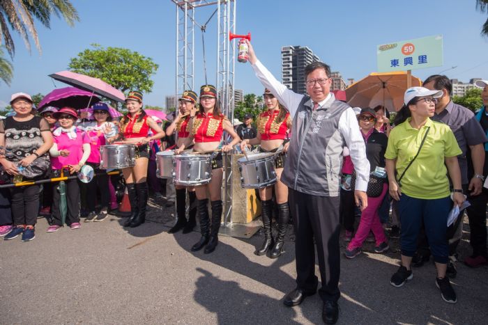 桃園市長鄭文燦7日上午前往中壢區,出席「2019中壢齊步走活力健康GO!GO!GO!」活動時表示,今日健走路線全長約3公里,將從文中三停車場出發,沿途行經青塘園、公十三公園、公四公園等特色景點。健走可以帶來健康、自信、微笑、更好的親子關係,也可降低高血壓、高血糖及高血脂等三高問題。市府將持續推動更多建設及活動,讓桃園各地好工作、好生活。
