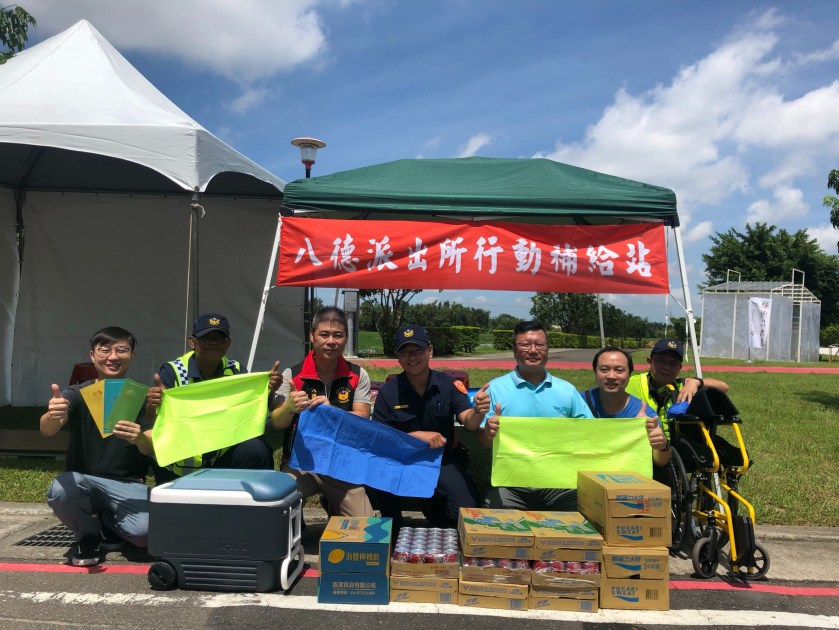 八德警分局四維、八德、大安等三個派出所的警友站,分別在大湳森林公園、溪濱公園、西坡埤塘生態公園等三個處所成立了「行動補給站」,準備了運動飲料、沙士、礦泉水等多種飲料以及餅乾、鯛魚燒、冰品、水果等食品,並派專人騎乘機車化身小蜜蜂,親自送到每位辛苦執勤的同仁手上。其中八德派出所警友站長吳航,特地準備了數十條涼感巾供同仁使用,頗受好評!