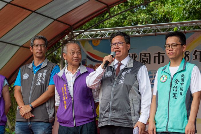 桃園市長鄭文燦8日上午前往新屋區九斗村休閒有機農場,出席桃園市總工會108年度勞工育樂「勞工法令宣導暨親子日」時表示,桃園目前受薪勞工約有106萬7,000名,感謝桃園市總工會及各工會同仁積極推動保障勞工權益措施及各式勞工教育訓練等活動,今日舉辦結合法令宣導、親子同樂及聯誼烤肉之「勞工法令宣導暨親子日」,期盼透過有趣的親子互動活動,提升勞工法令知識,市府亦全力支持且協助照顧勞工朋友,維護勞工基本權利,中秋將至,也祝福每個勞工家庭平安健康、快樂幸福。