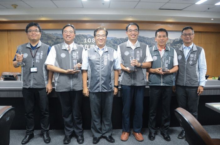 桃園市副市長游建華11日上午主持市政會議,表揚「107年度桃園市政府各區公所道路養護管理暨人行環境無障礙績效考評計畫」獲獎單位,考評計畫依據行政區人口數(15萬人)為門檻,劃分為A、B二組,並從中遴選出2名優等獎,其中A組由蘆竹區及中壢區脫穎而出,B組由龍潭區及大園區獲獎。游副市長表示,透過公平、公開之考評機制能激勵各區公所加強道路養護管理,提供市民更優良、安全的道路品質。