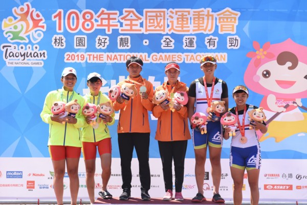女子組賽事,雙人雙槳式金牌南投縣(詹孟榕、徐銨檍)、銀牌台南市(黃馨葳、戴吟甄)、銅牌桃園市(林心怡、葉曉含);輕量級雙人雙槳式金牌台中市(陳晴萱、李佩珍)、銀牌宜蘭縣(張鈺苒、簡巧恩)、銅牌南投縣(謝閔竹、王明孍);四人單槳式前三名隊伍分別為新北市、台北市、宜蘭縣;四人雙槳式前三名隊伍分別為台北市、台南市、南投縣。划船賽事奪牌選手多有入選2019亞洲盃划船錦標賽代表隊,相信在10月亞錦賽也能有很好表現。