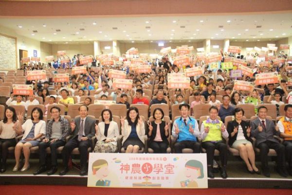 健康知識從小扎根,桃園市政府衛生局與桃園市藥師公會25日於桃園市立圖書館平鎮分館演藝廳舉辦「108年度桃園市市長盃神農小學堂健康知識創意競賽」,以深耕學童正確用藥(中、西藥)、毒品防制、心理衛生、菸害及檳榔防制、疾病防治及食品安全等健康觀念與知識。神農小學堂已成了各國小校園的年度盛事,今年度更首次邀請新竹縣、新竹市及苗栗縣國小參加觀摩賽,期望藉由以賽會友、寓教於樂的方式,鼓勵學生們將學習到的健康知識傳達給親友,使家中老中青成員共同改變錯誤的健康習慣並建立正確的觀念,讓健康知識落實在民眾日常生活中。