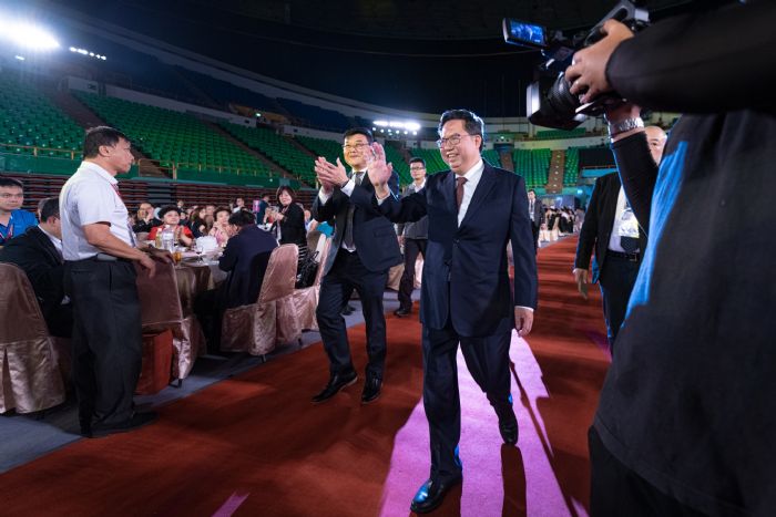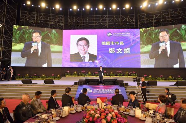 2019年世界台商總會年會(25)日於桃園體育大學揭開序幕,桃園市政府歡迎晚宴盛情邀請世界台灣商會聯合總會成員,包括北美洲、亞洲、歐洲、非洲、大洋洲、中南美洲及青商會等商會,共計1千3百人共襄盛舉。桃園市長鄭文燦說,「要讓所有台商從機場進來、搭上機捷那刻起就有回家的感覺」。