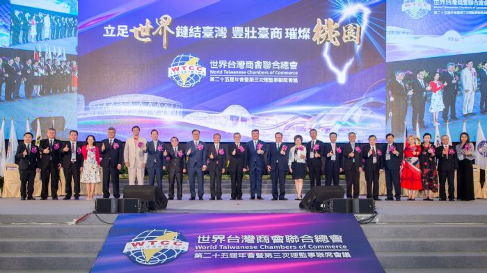 他認為,台商是台灣維持國際競爭力的寶貴資產及守護國家的重要力量,政府將持續協助台商佈局及營運,提升國際競爭優勢,攜手為台商福祉和國家繁榮發展努力。包括僑務委員會委員長吳新興、國策顧問暨世總諮詢委員田詒鴻、國策顧問暨世總名譽總會長林見松、行政院政務顧問楊信、市府秘書處長顏子傑、龜山區長呂緣、世界台灣商會聯合總會總會長游萬豐、監事長許世憑、第26屆新任總會長施至隆、監事長許秋揚、第27屆總會長當選人梁輝騰、名譽總會長林貴香,及各洲台商夥伴等均一同出席。