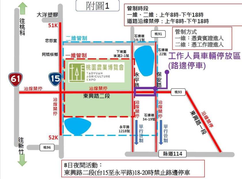 甲、桃93線東興路(台61線至縣道114)延長管制時間至20時。