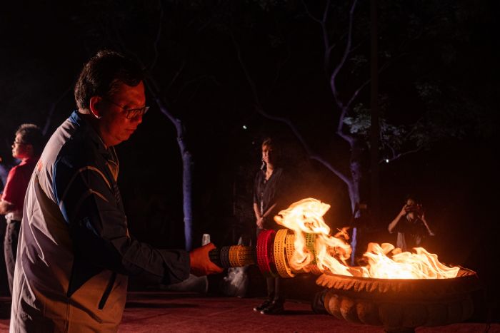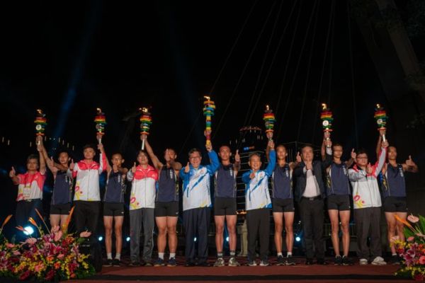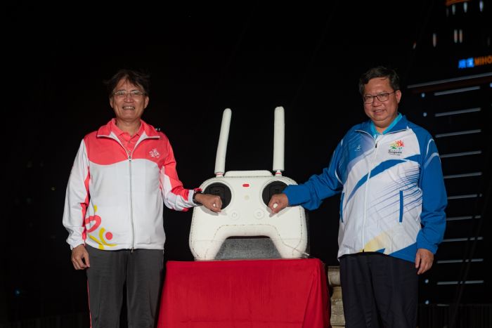 桃園市長鄭文燦(29)日晚間前往中壢青塘園,出席「108年全國運動會聖火引燃典禮」,鄭市長表示,108年全國運動會即將在10月19至24日期間登場,於45個競賽場地舉行34類競賽,屆時將有上萬名運動菁英、數千名裁判、貴賓齊聚桃園,今日特別選在青塘園舉行聖火引燃典禮,並獨步全國在埤塘中引燃聖火,突顯桃園珍貴的埤塘景觀特色,典禮中桃機一號也發出雷射光束射向天際的桃園行星,象徵桃園正光速前進,如同耀眼的星星,希望帶給國人不一樣的全運會,並邀請全民挺全運、挺台灣。