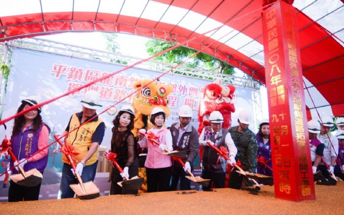 桃園市長鄭文燦1日下午前往平鎮區,出席「平鎮區龍南路砲指部外側公有土地單側道路拓寬工程」開工典禮,鄭市長表示,由於龍南路(龍安路至龍美路段)在上下班尖峰時段車輛容易壅塞,為了改善當地交通,市府擬拓寬陸軍二一砲指部外龍南路單側道路,將道路由15公尺拓寬為23.5公尺,總改善路段長度約105公尺,並劃設雙向各2車道及單側人行道,總經費約3,026萬元,預計明(109)年3月底前完工,盼有效解決該路段的交通問題。
