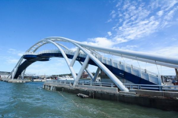 桃園市長鄭文燦(1)日下午前往永安漁港視察觀海橋時表示,永安觀海橋於民國91年4月落成,在升格後,市府於106年辦理橋梁改善工程,包括更新吊索、螺栓等設備,並於今(108)年更換橋頂景觀平台及橋面強化玻璃,加強遊客觀看夕陽及潮汐的安全。市府將持續辦理市內橋梁檢測及維護,讓市民行得安全又放心。