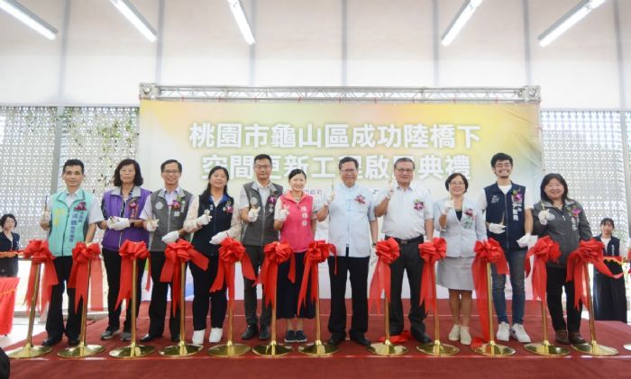 桃園市長鄭文燦3日下午前往龜山區,出席「龜山區成功陸橋下空間更新工程啟用典禮」,鄭市長表示,龜山區成功陸橋下空間更新工程的總經費約950萬元,今日正式啟用,設置包括羽球場、桌球場、長壽老人文康活動空間、無障礙廁所等設施,未來搭配桃林鐵路活化工程,以及鄰近中興兒二公園,讓市民朋友享有更完善的運動休閒空間。