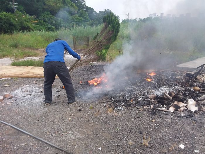 環保局日前接獲民眾通報,八德區福德一街附近常有不明異臭味,因該址位於桃園市及新北市交界處,環保局立即啟動桃園新北聯合稽查聯繫平台,派員到場埋伏,守株待兔,果然當場查獲行為人正焚燒木板,造成空氣污染,核已違反空氣污染防制法第32條規定告發。