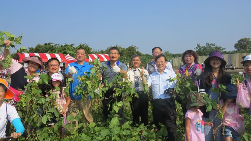 為推廣農民栽培觀摩,桃園市新屋區農會12日辦理「豆陣豆熱鬧」活動,以「大豆」為主題,舉辦吃喝玩樂過三關,現場提供免費鮮採毛豆、毛豆料理品嘗及豆奶試飲等體驗活動,結合新屋青年農民展售在地特色農特產品,提供在地、新鮮、非基改的國產雜糧農特產品,讓更多消費者認識優質國產雜糧的新鮮、健康、安全及美味等特質,活動報名踴躍,帶動當地雜糧產業。
