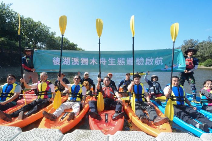鄭文燦表示,永安濱海休閒娛樂區是淡水與鹹水的交界地帶,後湖溪又是一處半封閉的水域,安全性佳,非常適合發展泛舟水域活動,適逢今(108)年青年體驗營區啟用,有43項高低攀爬、住宿及會議設施,目前已由海管處結合營區資源進行規劃,將來可以委外方式投資經營,陸續建置碼頭、泛舟設備與必要的管理制度,打造無動力泛舟低碳旅遊景點。