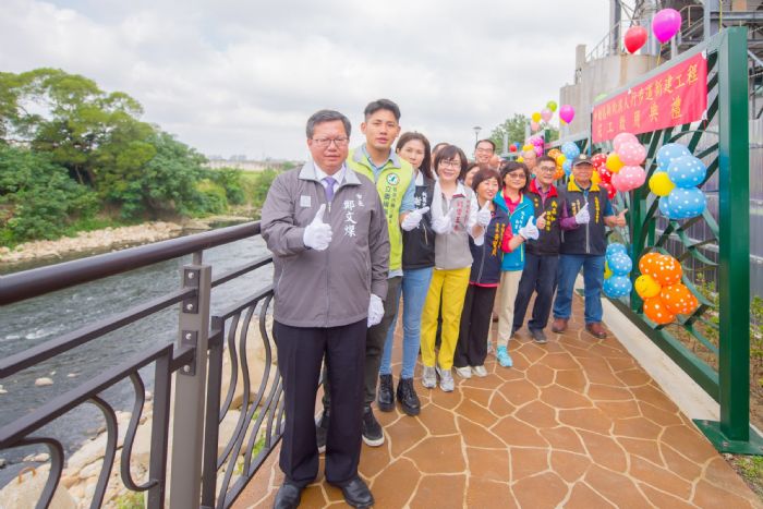 桃園市長鄭文燦18日上午前往中壢區出席「新街溪人行步道新建工程(福德橋至水尾橋)」完工啟用典禮。鄭市長說,本步道屬於中福段延伸至下游水尾橋前部分,工程總經費3,675萬元,由市府水務局補助新台幣858萬8167元,其餘由中壢區公所自籌經費辦理。工程內容包括新設步道總長640公尺、寬度2.2公尺、混凝土護岸540公尺,以及步道LED景觀燈29座、安全及造型護欄640公尺、植栽綠美化面積達2,000平方公尺,並進行河道疏濬,讓民眾可以沿著水岸步道欣賞新街溪景觀。