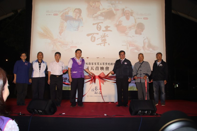 財團法人桃園市客家文化基金會18日於桃園市平鎮區新勢公園天幕籃球場舉辦「2019桃園客家百工百業紀錄片-技藝由心」露天首映會,期待透過影像促進大眾對客家文化資產的重視。