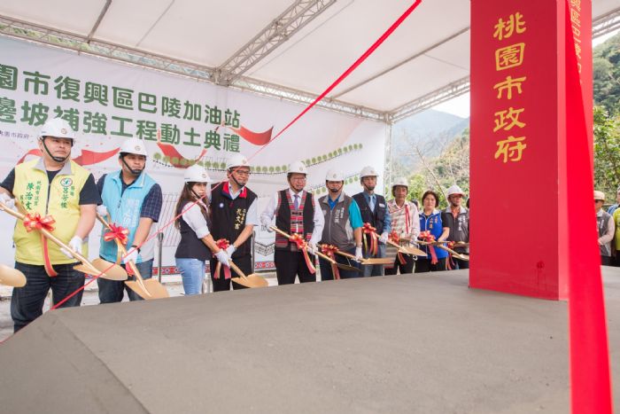 桃園市長鄭文燦(25)日上午前往復興區,出席「桃園市復興區巴陵加油站下邊坡補強工程動土典禮」。鄭市長表示,巴陵加油站是復興區後山居民長久的願望,期盼超過30年,市府與台灣中油公司進行協調,前導工程由市府針對下邊坡補強進行施作,工程經費約新臺幣8,700萬元,台灣中油公司允諾全額補助;後期市府無償提供土地,由中油公司新建加油站體及油槽,工程經費約新臺幣4,000萬元,預計後(110)年完工,感謝中油公司大力支持,展現服務原鄉的熱忱。