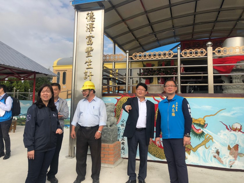 考察會議結束後,吳志揚會同交通部、台鐵官員前往富岡機廠的土地公廟參拜,該土地公廟由台灣第一台電氣化的自強號改建而成,極富特色。吳志揚與交通部及台鐵的官員們共同祈求台灣人民行車平安,旅途順心。