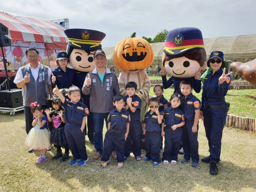 2日是南瓜節辦桌的大日子,活動現場另有一隅吸引不少人的目光,原來是小小警察正整裝待發,準備打擊犯罪。桃園市政府警察局婦幼隊結合南瓜節現場一系列豐富活動辦理婦幼安全宣導,吸引不少父母帶著小朋友參加,增進親子關係,讓小朋友們體驗小小波麗士日常,大夥兒都說:「我以後也要當警察!」家長們也都玩的不亦樂乎,且不約而同認為,這真的是一個寓教於樂的活動。