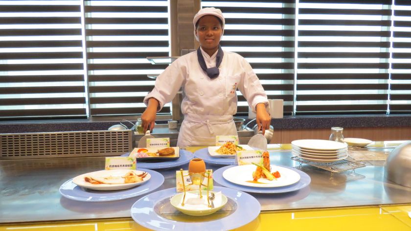 在這兩年多的學習中,秀花已具備獨立燒桌並烹飪出一整個鐵板燒套餐的能力,拿手菜餚為松露蒸蛋、煎大明蝦佐芥末醬、煎豬頸肉佐卡拉卡醬汁及煎透抽佐芥末胡椒塩…等,其中煎豬頸肉佐卡拉卡醬汁則是秀花研發的菜色,運用鐵板「煎」的技巧,結合帶有道地南非口味的卡拉卡醬汁,不僅煎出美味的料理,更烹調出屬於母親口中的家鄉味。