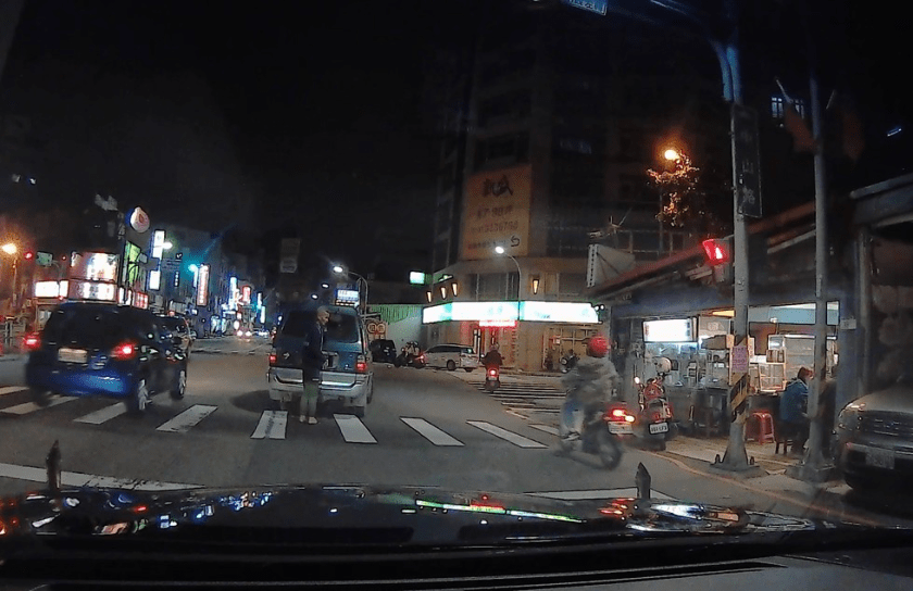 交通大隊直屬中隊警務員徐國智及警員蔣志煌於6日19時45分許,執行防制交通事故巡邏勤務經過桃園區中山路與育樂街口時,看見前方車輛突然閃著故障燈,立刻上前關心,發現1輛豐田廂型車車前站立1名年長者急打電話求救。