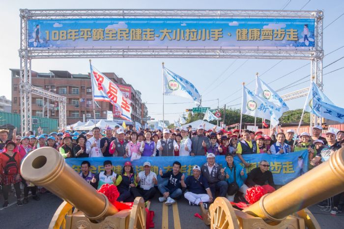 桃園市長鄭文燦9日上午前往平鎮區,出席「平鎮區108年度全民健走活動」時表示,健走可帶來健康、自信、微笑和滿滿歡喜,是很優質的運動,期盼市民朋友藉由今日健走活動發現平鎮歷史、生態和人文等多元特色的美好,里與里間也能更加和諧、充滿活力。