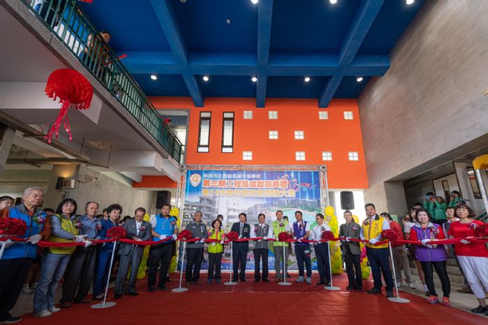 因此分別取得綠建築銀級標章及智慧建築銅級標章,前後歷時10年,今日在全校師生及校友們參與下,共同見證學校建築發展的新里程碑。包括市議員吳宗憲、郭蔡美英、市府教育局長高安邦、觀音區長洪清淵、桃園航勤公司董事長郭榮宗、觀音高中校長林振清均一同出席活動。
