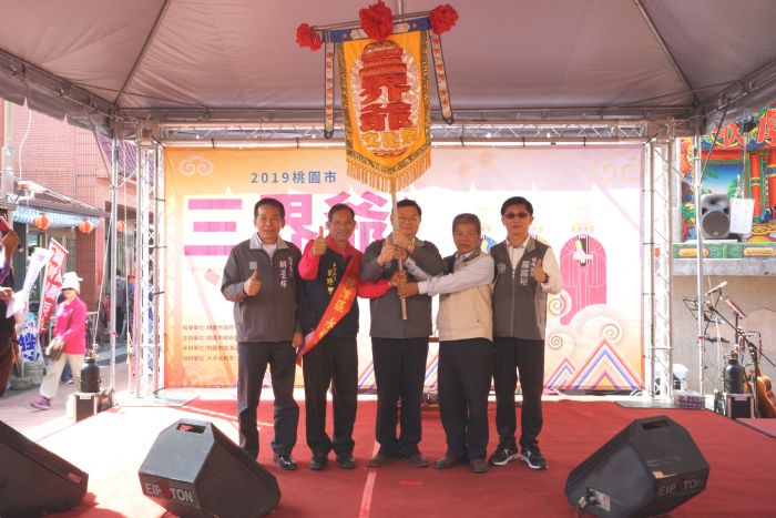 桃園市政府客家事務局委託龍潭區公所承辦之「2019桃園三界爺文化祭」系列活動於10日圓滿落幕,由客家局長何明光、龍潭區長胡星輝等貴賓共同出席主持祈福三獻禮及令旗交接儀式。上午開放民眾參與三界爺主題創意活動及水圳小旅行體驗,一大早湧現排隊體驗人潮,現場熱鬧滾滾,希望藉由三界爺的庇佑,讓大家都能消災解厄,身體安康。