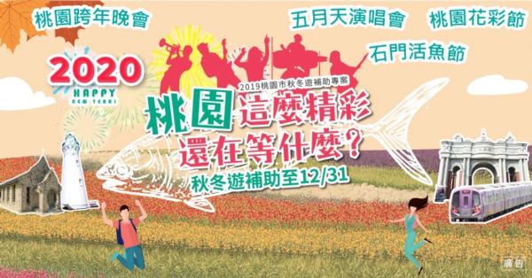 桃市府也於秋冬補助期間推出各項活動,108年10月16日起至11月6日舉辦「2019石門活魚節」,邀請大家一起來石門水庫品嘗秋季肥美的活魚盛宴;11月9日至12月1日舉辦「2019桃園花彩節」,打造約17公頃花海,邀請遊客走入桃園鄉村,體驗農業之美;12月底五月天也將第二次造訪桃園,一連在桃園國際棒球場開唱10場次;以及桃園跨年晚會更安排超強卡司一起迎接2020年。桃園精彩活動連連,歡迎大家來桃園並使用秋冬補助!