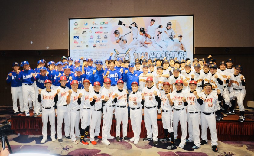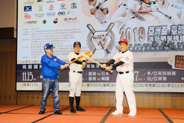「2019亞洲盃臺灣韓國日本演藝明星棒球公益經典賽」11月15日至17日起,由臺日韓3地演藝明星組成的三支球隊在桃園青埔棒球場進行5場球賽,這是首度由臺日韓三國出動大批演藝明星參賽,開打之前,三隊先禮後兵,15日上午在桃園喜來登酒店舉行記者會,3隊都嗆聲一定拿冠軍。