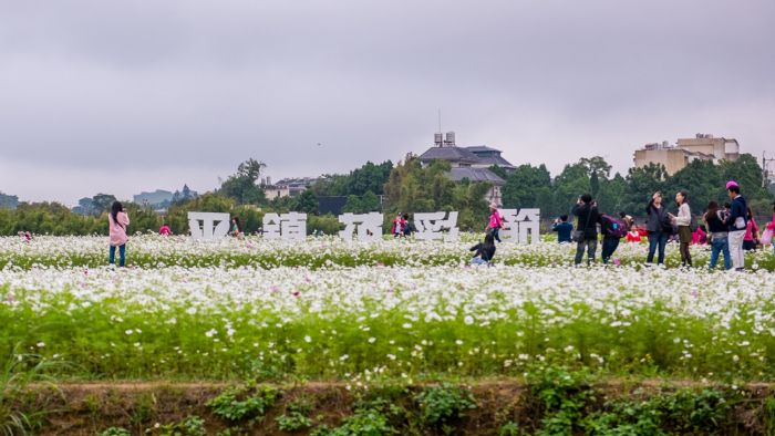 桃園市長鄭文燦23日下午前往平鎮區建安宮前廣場,出席2019桃園花彩節-平鎮展區主場活動「花現平鎮.幸福農來」,鄭市長表示,市府舉辦桃園花彩節已邁入第五屆,今(108)年自11月9日到12月1日,為期23天,於大溪月眉休閒農業區、中壢芭里社區、平鎮東勢庄接續展開。本周由平鎮東勢庄展區壓軸登場,從11月23日至12月1日,為期9天,以「花現平鎮‧幸福農來」為主題,將客家文化與農村生活融合,帶領民眾一起體驗客庄生活。